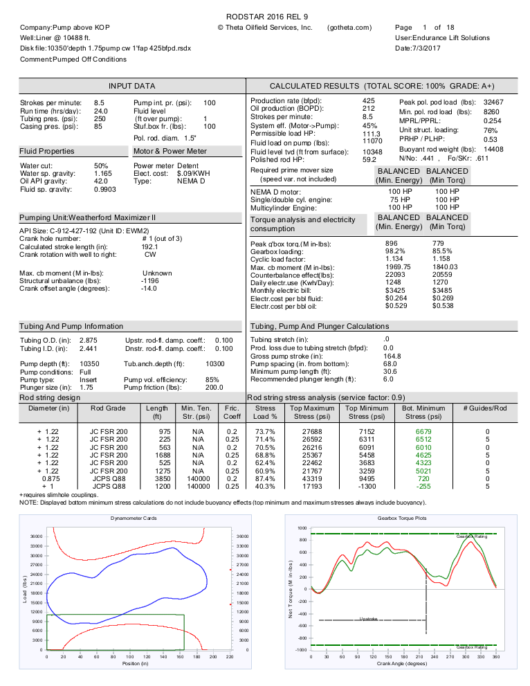 Endurance Lift Solutions has a highly qualified staff available to support your rod string design needs in order optimize the performance of your wells. Endurance utilizes multiple industry accepted programs, such as RodStar and S-Rod, in order to create ideal application for your unique needs. With our internal expertise in both Fiberglass and Steel rod string design, the team at Endurance is exceptionally qualified to provide recommendations on operational parameters to decrease costs and increase well production.